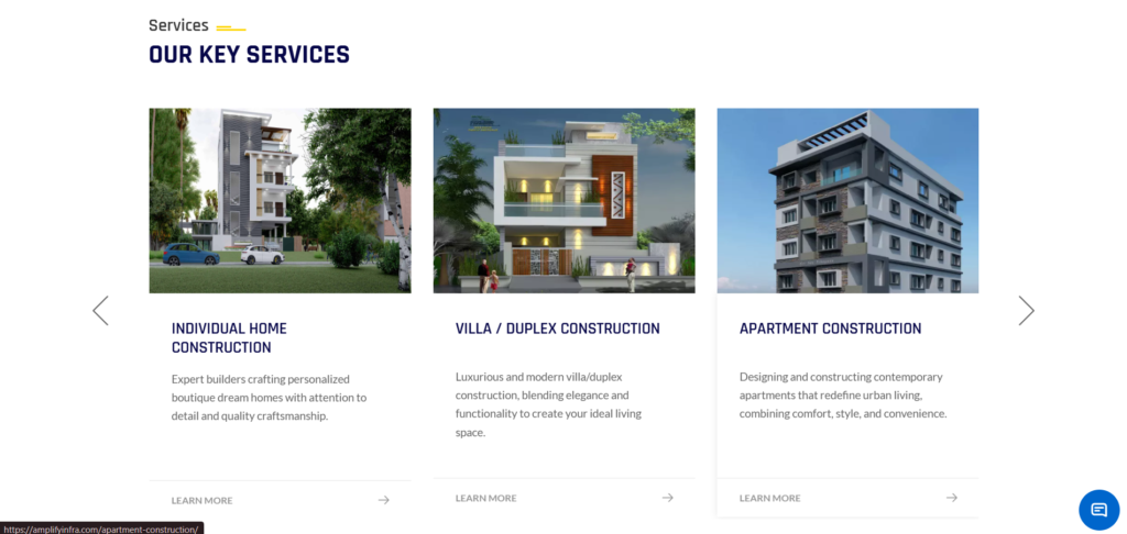 At Amplify Infra, we are your trusted construction partner, dedicated to building beautiful and sustainable buildings. With over 12 years of experience in the industry, we have earned a reputation for delivering high-quality construction projects that exceed expectations. Our expertise lies in implementing the best construction practices, leveraging cutting-edge technology, and collaborating with top industry professionals to create homes that are efficient, environmentally friendly, and tailored to our clients’ needs