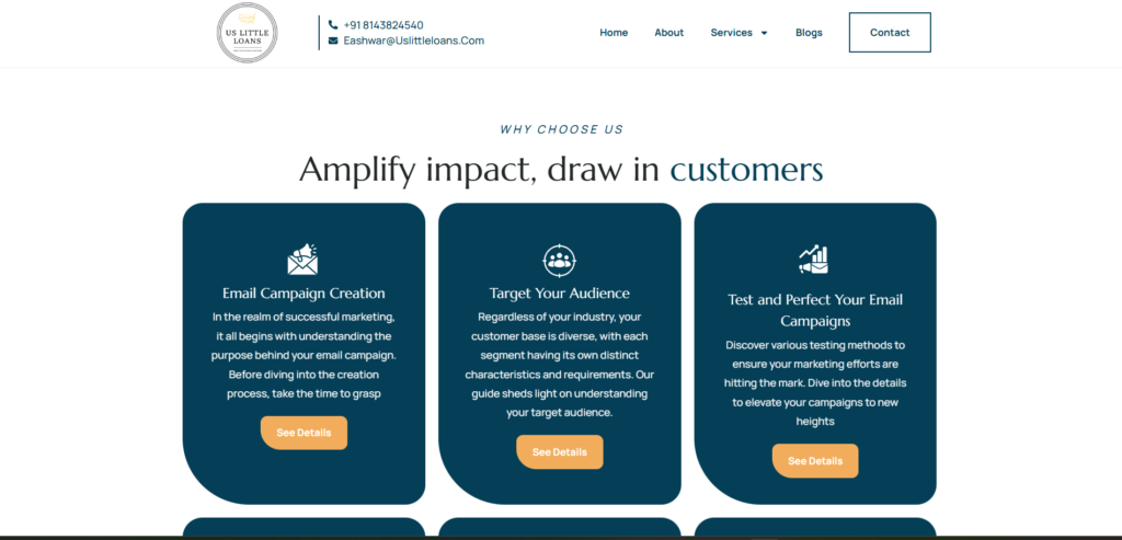 Us Little Loans is a marketing agency that specialises in helping businesses achieve their online goals and objectives. We started in 2020 as a one-man business, but we have quickly expanded into a full-service direct mailer that works with hundreds of clients across the United States and all sizes and industries. Whether you are a startup or a large franchise, we can craft your business ideas and plans into effective marketing strategies that will boost your online presence, traffic, and sales.